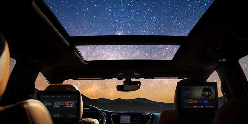 Staying connected in the 2023 Chrysler Pacifica is easy with the Uconnect 5 driver information system. With Apple CarPlay and Android Auto on board, you can easily access your favorite apps hands-free. An available 4G LTE Wi-Fi hotspot is available as an add-on, keeping you and your passengers connected when on the road. The available rear seat entertainment system is loaded with all the entertainment you need to keep passengers entertained for the trip. Use the available Amazon Fire TV or download the keep-up feature to stream movies and TV shows.