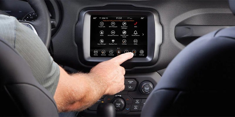 Every 2023 Renegade comes standard with several advanced driver aids. These include a forward collision warning system with automatic braking, a blind-spot monitor with rear cross-traffic alert, lane-departure warning with mitigation, and a trailer sway control feature. The Limited offers the Luxury Group Package with adaptive cruise control, rear parking sensors, rear automatic braking, and an automated parking system. Automatic high-beam headlights are also available for the Limited.