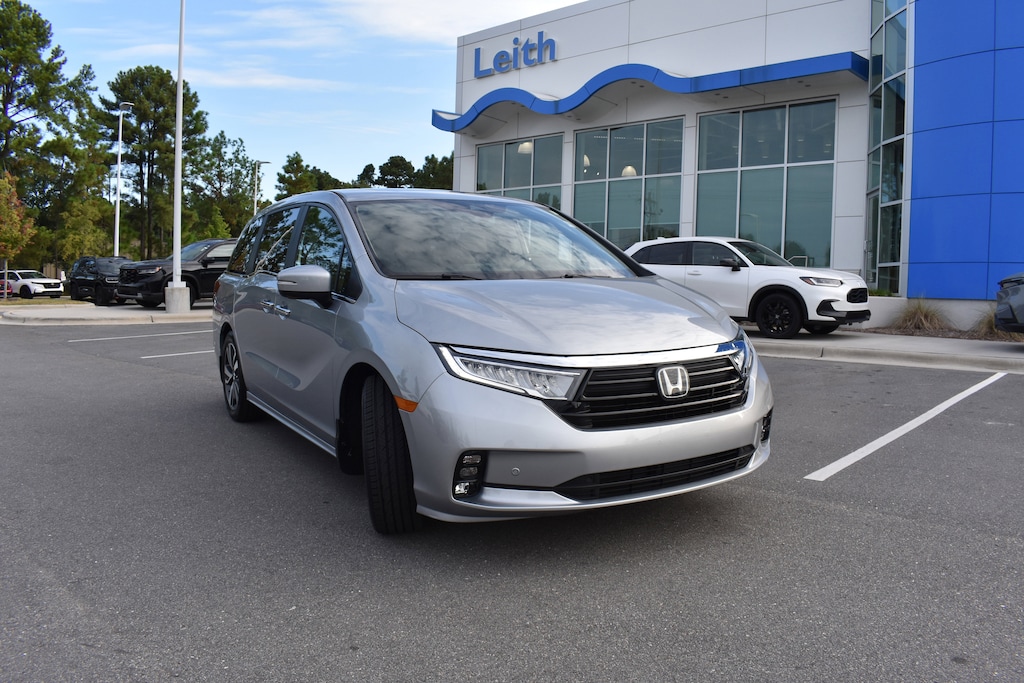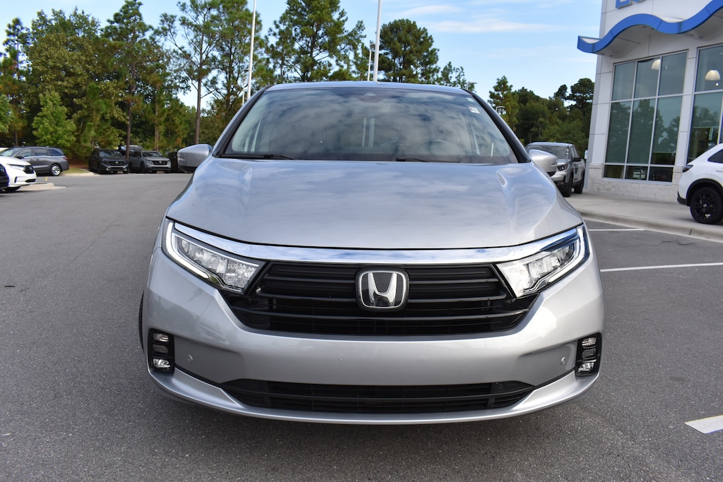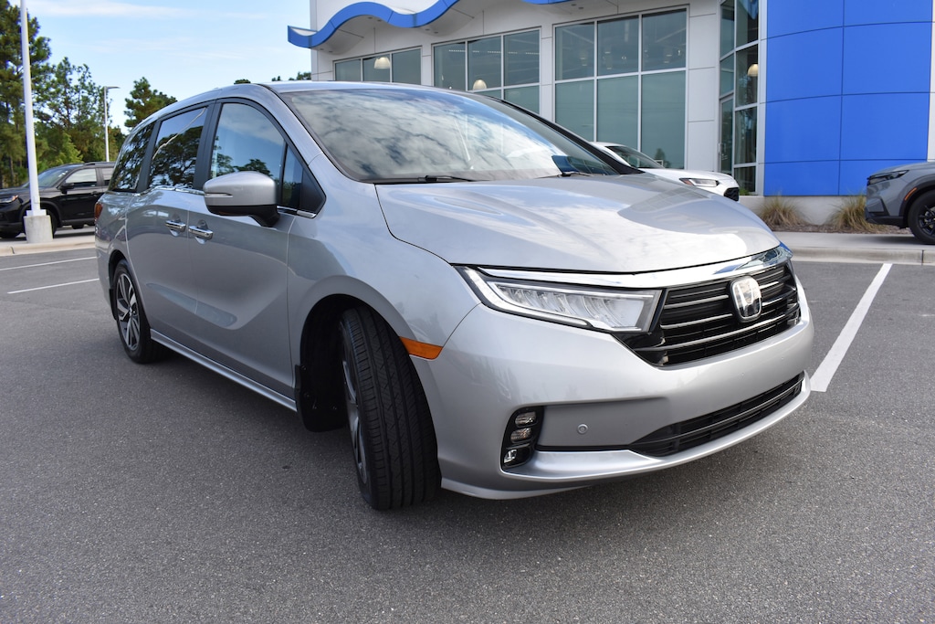 CARFAX One-Owner. Certified. Lunar Silver Metallic 2023 Honda Odyssey Touring FWD 10-Speed Automatic 3.5L V6 SOHC i-VTEC 24V 3.61 Axle Ratio, 3rd row seats: split-bench, 4-Wheel Disc Brakes, 7 Speakers, A/V remote: CabinControl, ABS brakes, Adaptive Cruise Control: Adaptive Cruise Control (ACC) with Low-Speed Follow, Air Conditioning, Alloy wheels, AM/FM radio: SiriusXM, Anti-whiplash front head restraints, Apple CarPlay/Android Auto, Auto High-beam Headlights, Auto-dimming Rear-View mirror, Automatic temperature control, Blind Spot Information (BSI) System warning, Brake assist, Bumpers: body-color, CD player, Compass, Delay-off headlights, Driver's Seat Mounted Armrest, Dual front impact airbags, Dual front side impact airbags, DVD-Audio, Electronic Stability Control, Emergency communication system: HondaLink, Exterior Parking Camera Rear, Four wheel independent suspension, Front anti-roll bar, Front dual zone A/C, Front fog lights, Fully automatic headlights, Garage door transmitter: HomeLink, Headphones, Heated door mirrors, Heated Front Bucket Seats, Heated front seats, Illuminated entry, Knee airbag, Lane departure: Lane Keeping Assist System (LKAS) active, Leather Seat Trim, Leather steering wheel, Low tire pressure warning, Memory seat, Navigation system: Honda Satellite-Linked Navigation System, Occupant sensing airbag, Outside temperature display, Overhead airbag, Panic alarm, Power door mirrors, Power driver seat, Power Liftgate, Power moonroof, Power passenger seat, Power steering, Power windows, Radio data system, Radio: 160-Watt AM/FM/HD/SiriusXM Audio System, Rear air conditioning, Rear anti-roll bar, Rear audio controls, Rear window defroster, Rear window wiper, Reclining 3rd row seat, Remote keyless entry, Security system, Speed control, Speed-sensing steering, Speed-Sensitive Wipers, Split folding rear seat, Spoiler, Steering wheel mounted audio controls, Tachometer, Telescoping steering wheel, Tilt steering wheel, Traction control, Trip computer, Turn signal indicator mirrors, Variably intermittent wipers, Wheels: 19" Machine-Finished Alloy.
