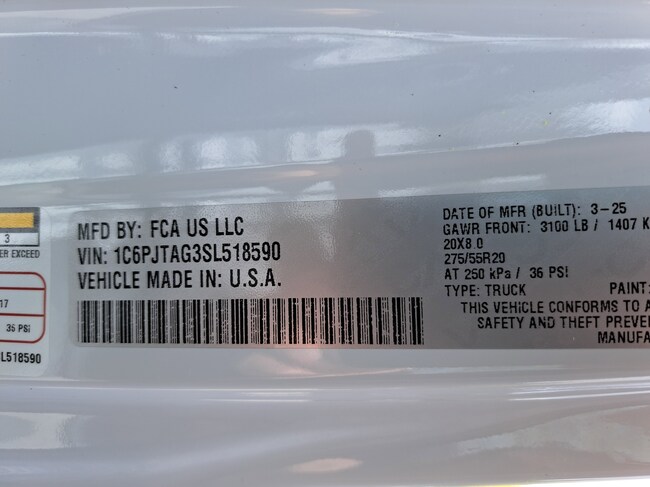 - VIN : 1C6PJTAG3SL518590