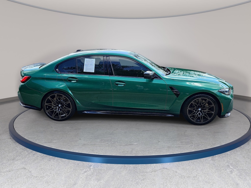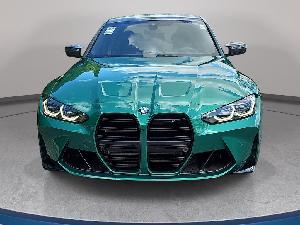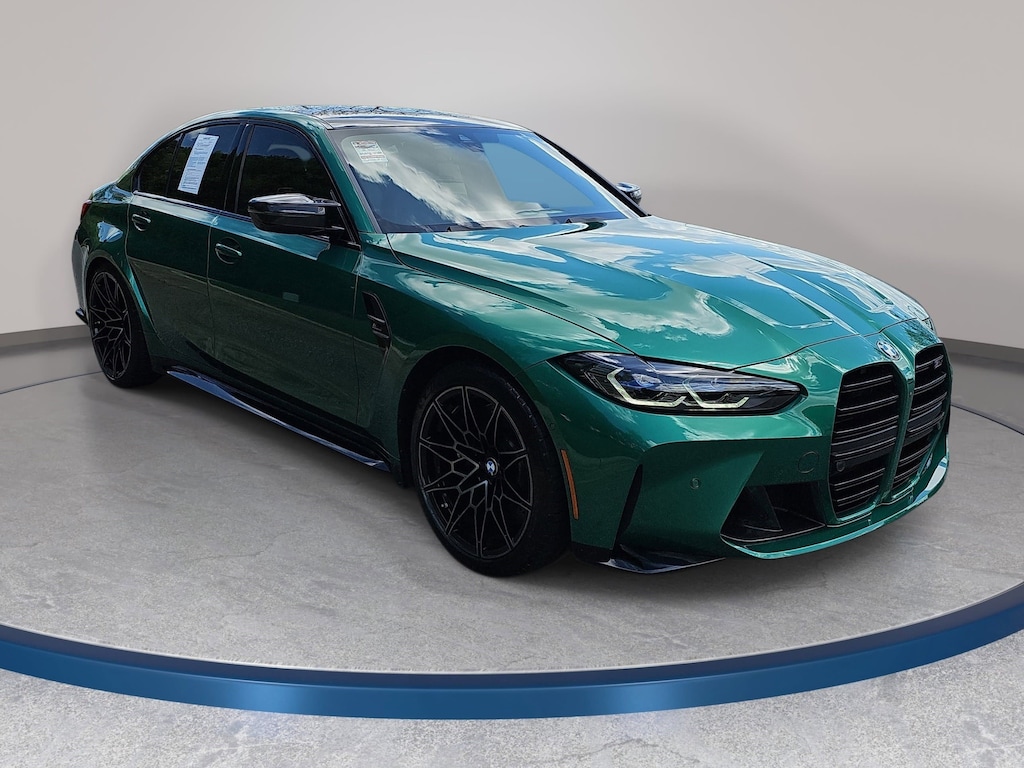 Isle of Man Green Metallic 2023 BMW M3 Competition AWD 8-Speed Automatic Steptronic 3.0L I6 Turbocharged DOHC 24V LEV3-ULEV70 503hp BMW Head Up Display, Executive Package, Executive Package (DISC), Heated Steering Wheel, Parking Assistance Package, Parking Assistant Plus, Power Tailgate, Remote Engine Start, SensaTec Dashboard.