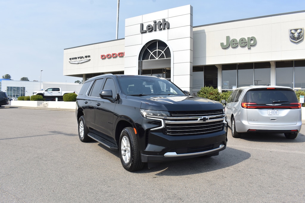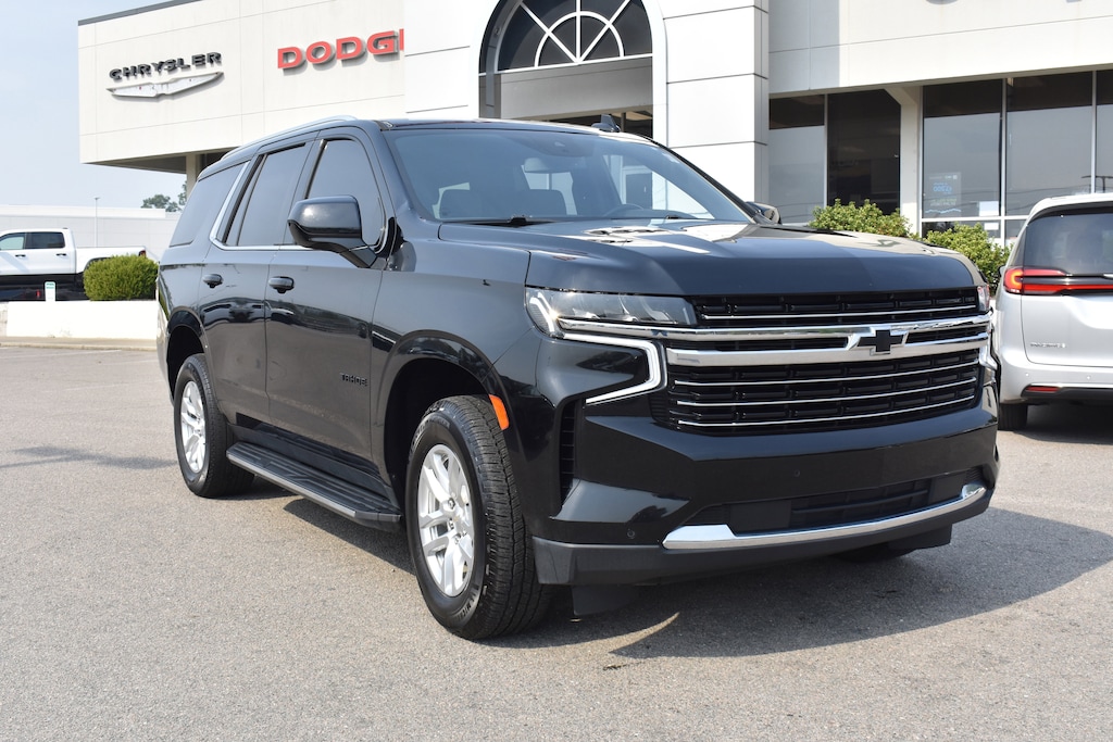 Clean CARFAX. Priced below KBB Fair Purchase Price! Black 2023 Chevrolet Tahoe LT 4WD 10-Speed Automatic with Overdrive EcoTec3 5.3L V8 10-Way Power Driver & Passenger Seat Adjusters, 1st & 2nd Row Color-Keyed Carpeted Floor Mats, 3.23 Rear Axle Ratio, 3rd row seats: split-bench, 4-Wheel Disc Brakes, 9 Speakers, ABS brakes, Air Conditioning, Alloy wheels, AM/FM radio: SiriusXM with 360L, Apple CarPlay/Android Auto, Auto High-beam Headlights, Auto-Dimming Inside Rear-View Mirror, Auto-dimming Rear-View mirror, Automatic temperature control, Bose 9-Speaker Stereo Audio System Feature, Brake assist, Bright Front & Rear Door Sill Plates, Bumpers: body-color, Color-Keyed Carpeting Floor Covering, Compass, Delay-off headlights, Driver & Front Outboard Passenger Airbags, Dual front impact airbags, Dual front side impact airbags, Electronic Stability Control, Emergency communication system: OnStar and Chevrolet connected services capable, Enhanced Driver Information Center, Floor Console w/Storage Area, Four wheel independent suspension, Front anti-roll bar, Front dual zone A/C, Fully automatic headlights, Garage door transmitter, Hands-Free Rear Power Programmable Liftgate, Heated door mirrors, Heated Driver & Front Passenger Seats, Heated front seats, Illuminated entry, Infotainment Display, Leather-Appointed Seat Trim, LED Daytime Running Lamps, Low tire pressure warning, Memory seat, Memory Settings for Driver, Navigation System, Occupant sensing airbag, Outside temperature display, Overhead airbag, Panic alarm, Power door mirrors, Power driver seat, Power Liftgate, Power passenger seat, Power steering, Power windows, Preferred Equipment Group 1LT, Premium audio system: Chevrolet Infotainment 3 Premium, Premium Smooth Ride Suspension, Radio: Chevrolet Infotainment 3 Premium System, Rain sensing wipers, Rear air conditioning, Rear anti-roll bar, Rear window defroster, Rear window wiper, Remote keyless entry, Remote Start, Roof rack: rails only, Security system, SiriusXM Radio w/360L, Speed control, Speed-sensing steering, Split folding rear seat, Spoiler, Steering wheel mounted audio controls, Tachometer, Telescoping steering wheel, Tilt steering wheel, Traction control, Trip computer, Universal Home Remote, Variably intermittent wipers, Voltmeter, Wheels: 18" x 8.5" Bright Silver Painted Aluminum, Wireless Charging, Wrapped Steering Wheel.