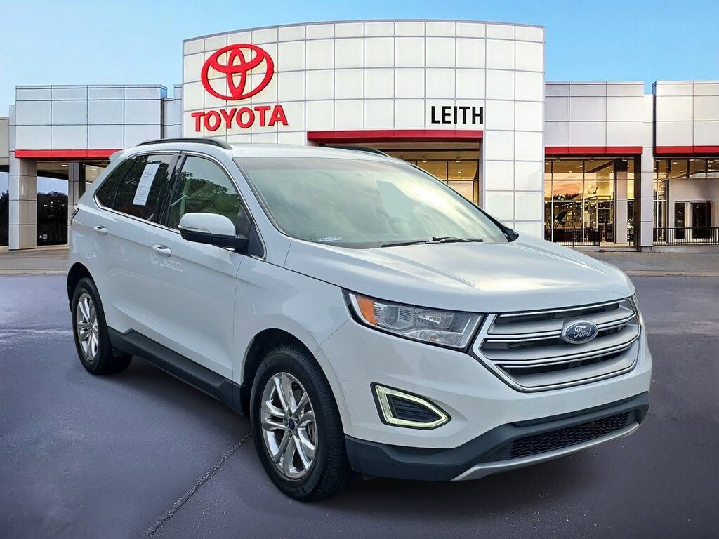 White Platinum Clearcoat Metallic 2015 Ford Edge SEL FWD 6-Speed Automatic with Select-Shift 3.5L V6 Ti-VCT AS IS CAR, LOCAL TRADE IN, BACK UP CAMERA, LEATHER, HEATED SEATS, SMART KEY W PUSH BUTTON START, POWER LIFTGATE, ABS brakes, Air Conditioning, Auto-dimming Rear-View mirror, Black Roof Rack Side Rails, Compass, Delay-off headlights, Electronic Stability Control, Equipment Group 201A, Exterior Parking Camera Rear, Four wheel independent suspension, Front Bucket Seats, Front dual zone A/C, Fully automatic headlights, Leather-Trimmed Heated Bucket Seats, Passenger door bin, Power driver seat, Power steering, Power windows, Premium 9 Speaker Audio, Rear Parking Sensors, Rear seat center armrest, Steering wheel mounted audio controls, SYNC, SYNC w/MyFord Touch, Telescoping steering wheel, Traction control, Turn signal indicator mirrors, Unique Cloth Bucket Seats, Wheels: 18 Aluminum Painted Sparkle Silver.