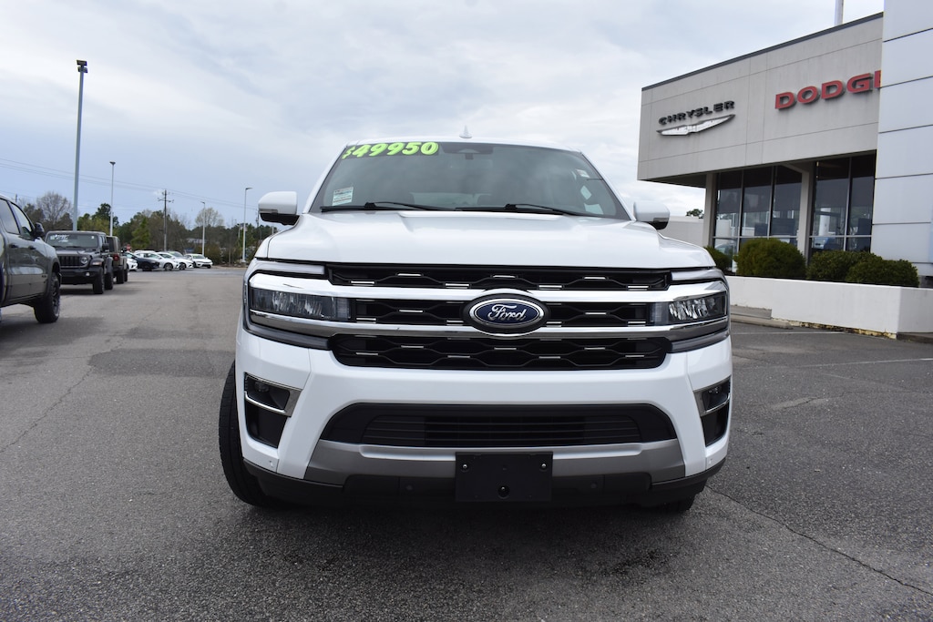 Clean CARFAX. CARFAX One-Owner. Oxford White 2024 Ford Expedition Limited RWD 10-Speed Automatic EcoBoost 3.5L V6 GTDi DOHC 24V Twin Turbocharged 12 Speakers, 2nd Row Power-Folding 40/20/40 Leather Bench Seat, 3.31 Axle Ratio, 360-Degree Camera w/Split View, 3rd row seats: split-bench, 4-Wheel Disc Brakes, ABS brakes, Adjustable pedals, Air Conditioning, Alloy wheels, AM/FM radio: SiriusXM with 360L, Auto High-beam Headlights, Auto-dimming door mirrors, Auto-dimming Rear-View mirror, Automatic temperature control, Brake assist, Bumpers: body-color, Compass, Connected Navigation, Delay-off headlights, Dual front impact airbags, Dual front side impact airbags, Ebony Black Mesh Grille, Electronic Stability Control, Emergency communication system: SYNC 4 911 Assist, Equipment Group 302A High Package, Exterior Parking Camera Rear, Four wheel independent suspension, Front anti-roll bar, Front dual zone A/C, Front fog lights, Fully automatic headlights, Garage door transmitter, Heated & Ventilated Leather Front Captain's Chairs, Heated door mirrors, Heated front seats, Heated rear seats, Heated steering wheel, Heavy-Duty Independent Suspension, Illuminated entry, Leather steering wheel, Low tire pressure warning, Magnetic-Painted Power Deployable Running Boards, Memory seat, Navigation system: Connected Navigation, Occupant sensing airbag, Overhead airbag, Overhead console, Panic alarm, Pedal memory, Power door mirrors, Power driver seat, Power Liftgate, Power moonroof, Power passenger seat, Power steering, Power windows, Power-Folding Sideview Mirrors w/Autofold, Radio data system, Radio: B&O Sound System by Bang & Olufsen, Rain sensing wipers, Rear air conditioning, Rear anti-roll bar, Rear window defroster, Rear window wiper, Reclining 3rd row seat, Remote keyless entry, Reverse Brake Assist, Security system, SiriusXM w/360L, Speed control, Speed-sensing steering, Speed-Sensitive Wipers, Split folding rear seat, Spoiler, Steering wheel memory, Steering wheel mounted audio controls, SYNC 4 w/Enhanced Voice Recognition, Tachometer, Telescoping steering wheel, Tilt steering wheel, Traction control, Trip computer, Turn signal indicator mirrors, Variably intermittent wipers, Ventilated front seats, Voltmeter, Wheels: 22" 12-Spoke Polished Aluminum.