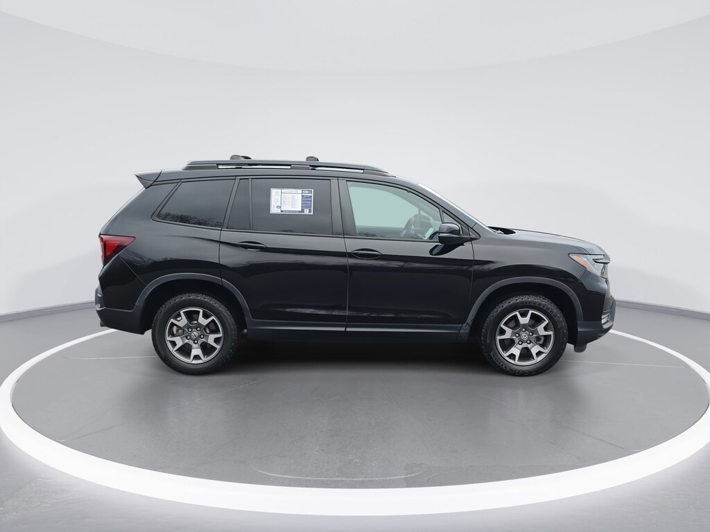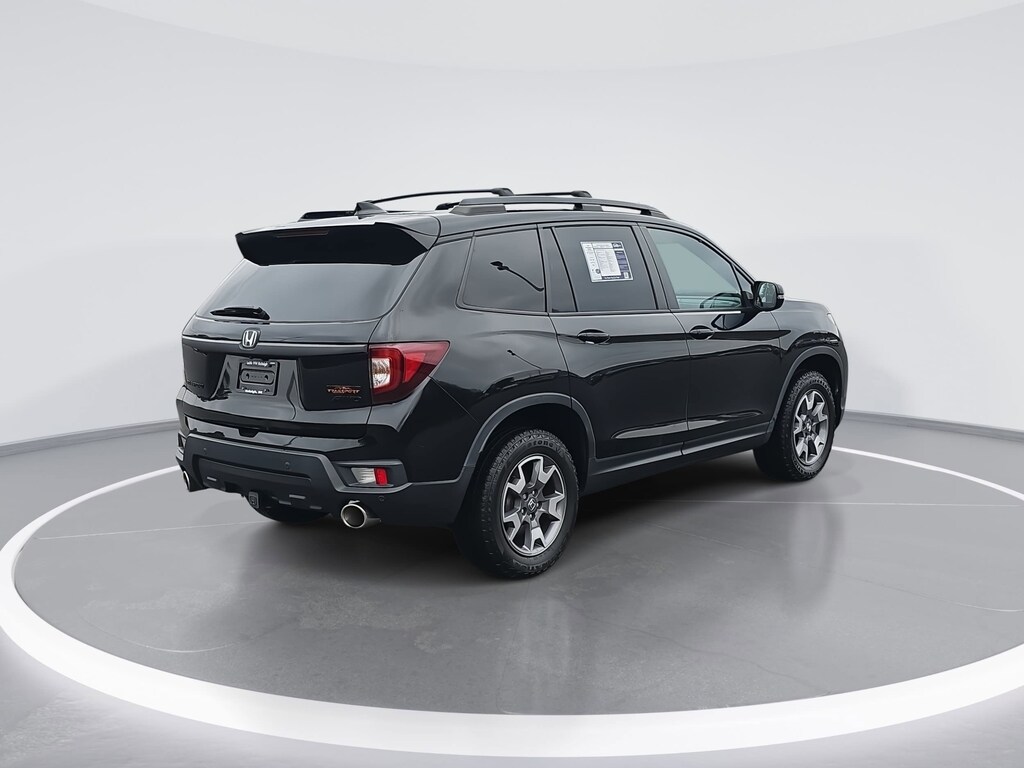 Crystal Black Pearl 2023 Honda Passport TrailSport AWD 9-Speed Automatic 3.5L V6 24V SOHC i-VTEC 4.334 Axle Ratio, AM/FM radio: SiriusXM, Blind Spot Information (BSI) System warning, Exterior Parking Camera Rear, Front Bucket Seats, Front dual zone A/C, Heated Front Bucket Seats, Lane departure: Lane Keeping Assist System (LKAS) active, Leather-Trimmed Seats, Navigation system: Honda Satellite-Linked Navigation System, Power driver seat, Power Liftgate, Power passenger seat, Radio: 215-Watt Audio System w/7 Speakers, Rear air conditioning, Rear window wiper, Remote keyless entry, Split folding rear seat, Steering wheel mounted audio controls, Wheels: 18" Machine-Finish Alloy.