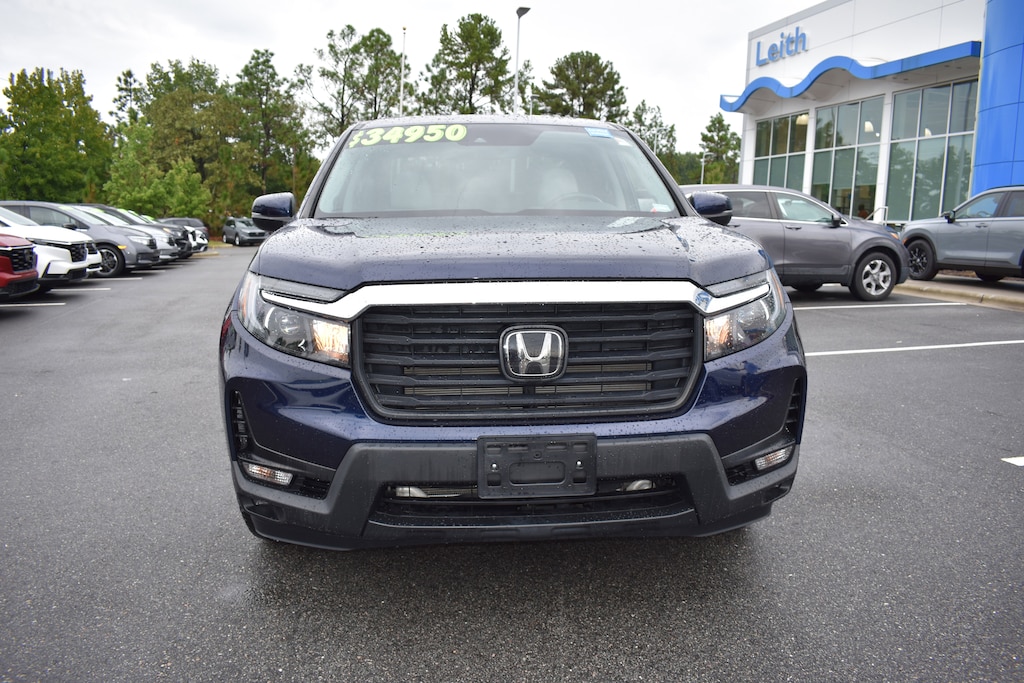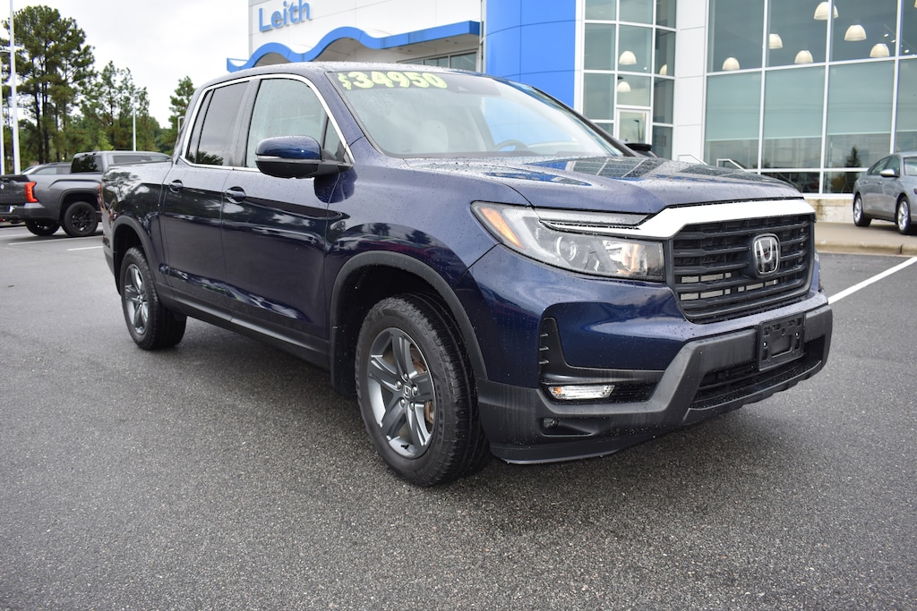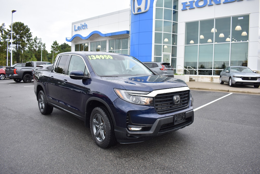 Clean CARFAX. CARFAX One-Owner. Certified. Obsidian Blue Pearl 2023 Honda Ridgeline RTL AWD 9-Speed Automatic 3.5L V6 SOHC i-VTEC 24V 4-Wheel Disc Brakes, 4.33 Axle Ratio, 7 Speakers, ABS brakes, Air Conditioning, Alloy wheels, AM/FM radio: SiriusXM, Apple CarPlay/Android Auto, Auto-dimming Rear-View mirror, Automatic temperature control, Blind Spot Information (BSI) System warning, Bluetooth® Hands-Free Link, Brake assist, Bumpers: body-color, Delay-off headlights, Driver's Seat Mounted Armrest, Dual front impact airbags, Dual front side impact airbags, Electronic Stability Control, Exterior Parking Camera Rear, Four wheel independent suspension, Front anti-roll bar, Front Bucket Seats, Front dual zone A/C, Front fog lights, Fully automatic headlights, Garage door transmitter: HomeLink, Heated door mirrors, Heated Front Bucket Seats, Heated front seats, Illuminated entry, Leather Seat Trim, Low tire pressure warning, Memory seat, Occupant sensing airbag, Outside temperature display, Overhead airbag, Panic alarm, Passenger seat mounted armrest, Power door mirrors, Power driver seat, Power moonroof, Power passenger seat, Power steering, Power windows, Radio data system, Radio: 215-Watt Audio System w/7 Speakers, Rear air conditioning, Rear anti-roll bar, Rear reading lights, Rear seat center armrest, Rear step bumper, Rear window defroster, Remote keyless entry, Security system, SiriusXM, Speed control, Speed-sensing steering, Split folding rear seat, Steering wheel mounted audio controls, Tachometer, Telescoping steering wheel, Tilt steering wheel, Traction control, Trip computer, Turn signal indicator mirrors, Variably intermittent wipers, Wheels: 18" Exclusive Pewter Gray Alloy.