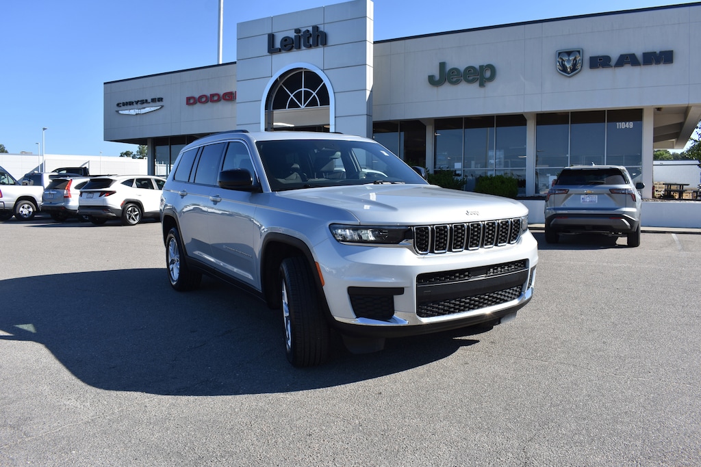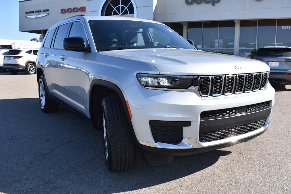 Clean CARFAX. CARFAX One-Owner. Silver Zynith 2024 Jeep Grand Cherokee L Laredo 4WD 8-Speed Automatic 3.6L V6 24V VVT 115V Auxiliary Power Outlet, 2nd Row 60/40 Bench w/Manual Tip/Slide, 2nd Row Seat Center Armrest/Cupholders, 3 Rear Seat Head Restraints, 3.45 Rear Axle Ratio, 3rd Row Charge-Only USB Ports, 3rd row seats: split-bench, 4-Wheel Disc Brakes, 6 Speakers, 7-Passenger Seating, ABS brakes, Air Conditioning, Alloy wheels, Anti-whiplash front head restraints, Automatic temperature control, Brake assist, Bumpers: body-color, Center Rear 3-Point Seat Belt, Cloth Seats, Compass, Delay-off headlights, Dual front impact airbags, Dual front side impact airbags, Electronic Stability Control, Emergency communication system, Four wheel independent suspension, Front anti-roll bar, Front Center Armrest w/Storage, Front dual zone A/C, Fully automatic headlights, Heated door mirrors, Heated Front Seats, Heated Steering Wheel, Illuminated entry, Knee airbag, Low tire pressure warning, Luxury Tech Group I, Manual Fold Seatbacks, Normal Duty Suspension, Occupant sensing airbag, Outside temperature display, Overhead airbag, Overhead console, Panic alarm, ParkView Rear Back-Up Camera, Passenger door bin, Power door mirrors, Power driver seat, Power Liftgate, Power steering, Power windows, Quick Order Package 23A Laredo, Radio data system, Radio: Uconnect 5 w/8.4" Display, Rain Sensitive Windshield Wipers, Rear air conditioning, Rear anti-roll bar, Rear window defroster, Rear window wiper, Reclining 3rd row seat, Remote keyless entry, Remote Start System, Security system, Selectable Tire Fill Alert, Speed control, Speed-Sensitive Wipers, Spoiler, Steering wheel mounted audio controls, Tachometer, Telescoping steering wheel, Tilt steering wheel, Traction control, Trip computer, Variably intermittent wipers, Voltmeter, Wheels: 18" x 8.0" Fully Painted Aluminum, Wireless Charging Pad.