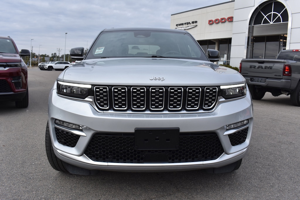 CARFAX One-Owner. Silver Zynith 2025 Jeep Grand Cherokee Summit 4WD 8-Speed Automatic 3.6L V6 24V VVT 10 Speakers, 4-Wheel Disc Brakes, ABS brakes, Active Noise Control System, Adaptive suspension, Air Conditioning, Alloy wheels, AM/FM radio: SiriusXM with 360L, Anti-whiplash front head restraints, Audio memory, Auto High-beam Headlights, Auto-dimming door mirrors, Auto-dimming Rear-View mirror, Auto-leveling suspension, Automatic temperature control, Auxiliary Battery, Brake assist, Bumpers: body-color, Compass, Delay-off headlights, Dual front impact airbags, Dual front side impact airbags, Electronic Stability Control, Emergency communication system, Four wheel independent suspension, Front anti-roll bar, Front dual zone A/C, Front fog lights, Fully automatic headlights, Garage door transmitter, Genuine wood dashboard insert, Genuine wood door panel insert, Heated door mirrors, Heated front seats, Heated rear seats, Heated steering wheel, Knee airbag, Leather steering wheel, Low tire pressure warning, Memory seat, Nappa Leather Seats, Navigation System, Normal Duty Suspension, Occupant sensing airbag, Outside temperature display, Overhead airbag, Overhead console, Panic alarm, Power door mirrors, Power driver seat, Power Liftgate, Power moonroof, Power passenger seat, Power steering, Power windows, Quick Order Package 23S, Radio data system, Radio: Uconnect 5 Nav with 10.1" Display, Rain sensing wipers, Rear air conditioning, Rear anti-roll bar, Rear dual zone A/C, Rear window defroster, Rear window wiper, Remote keyless entry, Security system, Speed control, Speed-Sensitive Wipers, Split folding rear seat, Spoiler, Steering wheel memory, Steering wheel mounted audio controls, Tachometer, Telescoping steering wheel, Tilt steering wheel, Traction control, Trip computer, Turn signal indicator mirrors, Variably intermittent wipers, Ventilated front seats, Voltmeter, Wheels: 20" x 8.5" Fully Painted Aluminum Silver.