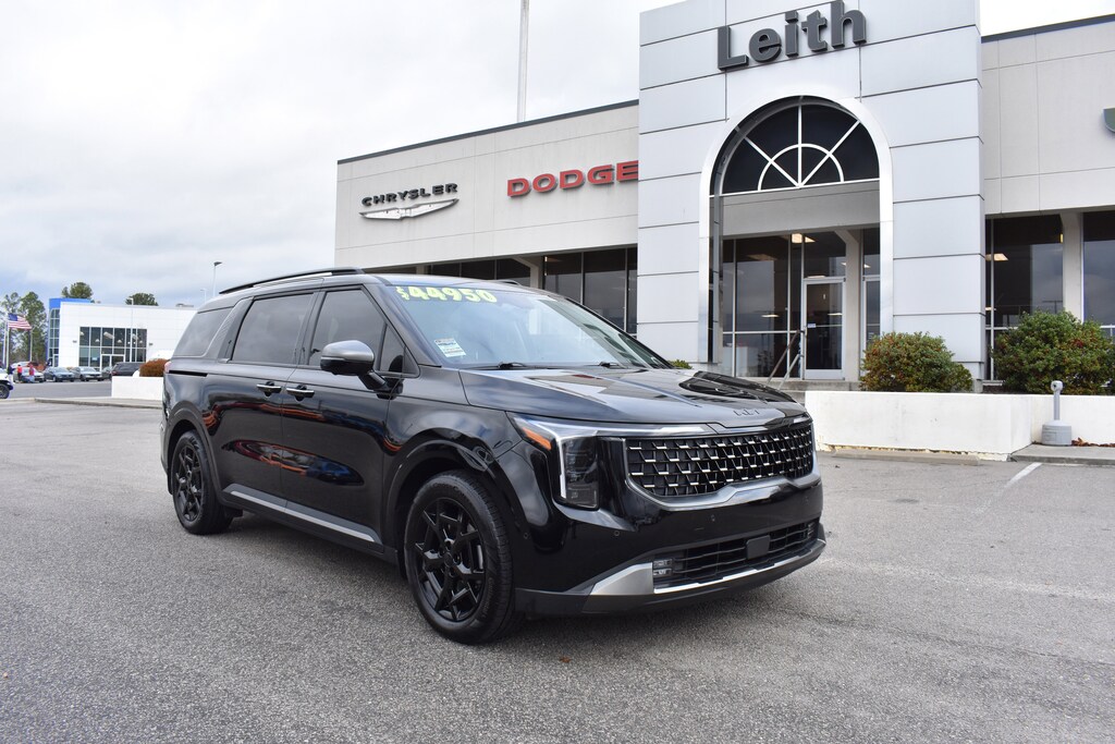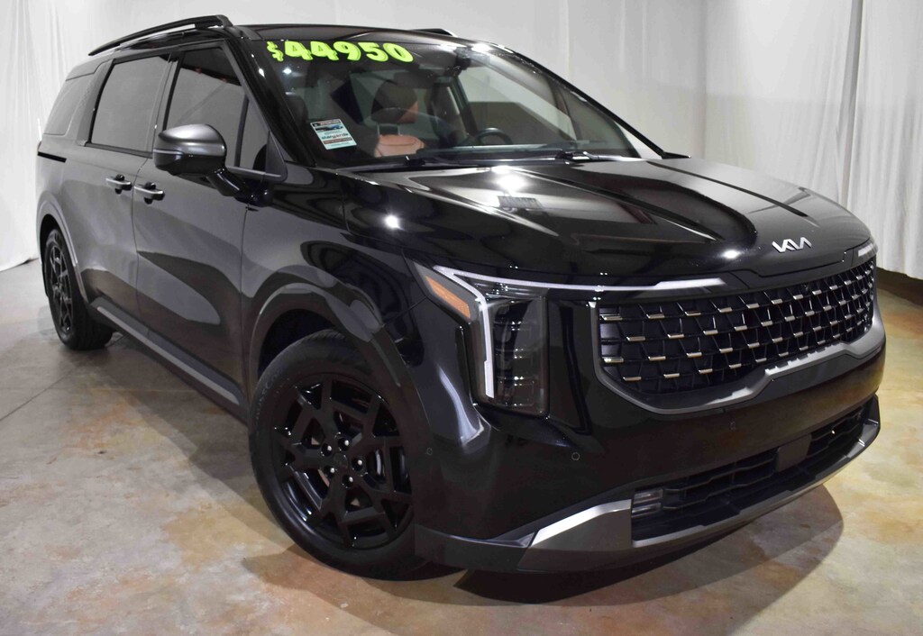 Clean CARFAX. CARFAX One-Owner. Aurora Black Pearl 2025 Kia Carnival SX Prestige FWD 8-Speed Automatic V6 12 Speakers, 3.51 Axle Ratio, 3rd row seats: split-bench, 4-Wheel Disc Brakes, ABS brakes, Air Conditioning, Alloy wheels, AM/FM radio: SiriusXM, Apple CarPlay & Android Auto, Auto High-beam Headlights, Auto-dimming Rear-View mirror, Automatic temperature control, Brake assist, Bumpers: body-color, Compass, Delay-off headlights, Dual front impact airbags, Dual front side impact airbags, Dual Screen Rear Seat Entertainment System, Electronic Stability Control, Emergency communication system, Exterior Parking Camera Rear, Four wheel independent suspension, Front anti-roll bar, Front dual zone A/C, Front fog lights, Fully automatic headlights, Garage door transmitter: HomeLink, Heads-Up Display, Heated & Ventilated Front Bucket Seats, Heated door mirrors, Heated front seats, Heated steering wheel, Illuminated entry, Knee airbag, Leather Shift Knob, Leather steering wheel, Low tire pressure warning, Memory seat, Navigation system: AVN 5.0 Navigation System, Occupant sensing airbag, Outside temperature display, Overhead airbag, Panic alarm, Power 2nd-Row Moonroof, Power door mirrors, Power driver seat, Power Liftgate, Power moonroof, Power passenger seat, Power steering, Power windows, Pure Leather Seat Trim, Radio: AM/FM/HD Audio System, Rain sensing wipers, Rear air conditioning, Rear anti-roll bar, Rear Seat Entertainment Package, Rear window defroster, Rear window wiper, Reclining 3rd row seat, Remote keyless entry, Security system, Speed control, Speed-sensing steering, Split folding rear seat, Spoiler, Steering wheel mounted audio controls, Tachometer, Telescoping steering wheel, Tilt steering wheel, Traction control, Trailer Prewire Harness, Trip computer, Turn signal indicator mirrors, Variably intermittent wipers, Ventilated front seats, Wheels: 7.5J x 19" Alloy Dark Edition.