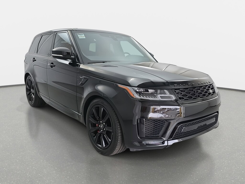 Santorini Black Metallic 2022 Land Rover Range Rover Sport HST 3.0L I6 Turbocharged 16-Way Heated/Cooled HST Front Seats w/Memory, 19 Speakers, 4-Wheel Disc Brakes, ABS brakes, Adaptive suspension, Air Conditioning, AM/FM radio: SiriusXM, Android Auto, Apple CarPlay, Apple CarPlay & Android Auto, Auto High-beam Headlights, Auto tilt-away steering wheel, Auto-dimming door mirrors, Auto-dimming Rear-View mirror, Auto-leveling suspension, Automatic temperature control, Brake assist, Bumpers: body-color, Child-Seat-Sensing Airbag, Compass, Delay-off headlights, Driver door bin, Driver vanity mirror, Dual front impact airbags, Dual front side impact airbags, Duo-Tone Windsor Leather Seat Trim, Electronic Stability Control, Emergency communication system: InControl Protect, Exterior Parking Camera Rear, Four wheel independent suspension, Front anti-roll bar, Front Bucket Seats, Front Center Armrest w/Storage, Front dual zone A/C, Front fog lights, Front reading lights, Fully automatic headlights, Garage door transmitter: HomeLink, Head restraints memory, Headlight cleaning, Heated door mirrors, Heated front seats, Heated rear seats, Illuminated entry, Leather Shift Knob, Low tire pressure warning, Memory seat, Navigation System, Occupant sensing airbag, Outside temperature display, Overhead airbag, Overhead console, Panic alarm, Passenger door bin, Passenger vanity mirror, Power adjustable front head restraints, Power door mirrors, Power driver seat, Power Liftgate, Power moonroof, Power passenger seat, Power steering, Power windows, Radio data system, Radio: Meridian Surround Sound System (825W), Rain sensing wipers, Rear air conditioning, Rear anti-roll bar, Rear fog lights, Rear reading lights, Rear seat center armrest, Rear window defroster, Rear window wiper, Remote keyless entry, Security system, Sliding Panoramic Roof, Speed-sensing steering, Speed-Sensitive Wipers, Split folding rear seat, Spoiler, SPORT Badge in Black, Steering wheel mounted audio controls, Tachometer, Telescoping steering wheel, Traction control, Turn signal indicator mirrors, Ventilated front seats, Wheels: 21" 9 Spoke Gloss Black 'Style 9001'.