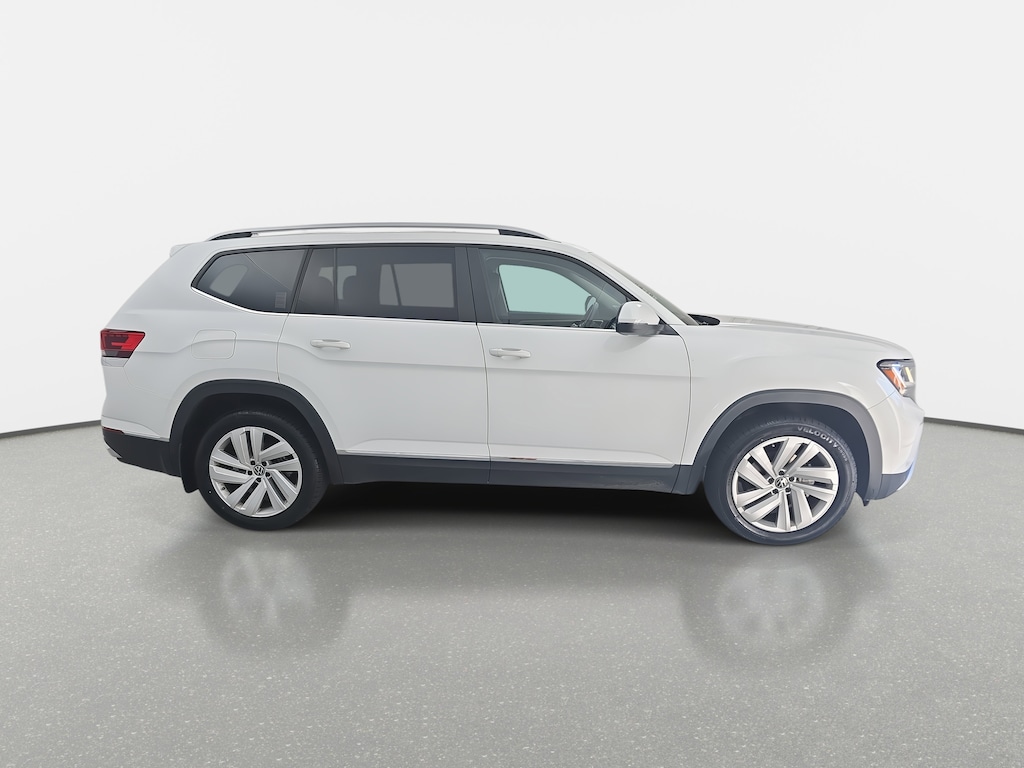 White 2021 Volkswagen Atlas SEL AWD 8-Speed Automatic with Tiptronic 3.6L V6 3rd row seats: split-bench, Auto High-beam Headlights, Exterior Parking Camera Rear, Heated Comfort Front Bucket Seats, Heated steering wheel, Memory seat, Perforated V-Tex Leatherette Seating Surfaces, Power Liftgate, Rain sensing wipers, Wheels: 20" 5-Spoke Silver Alloy.