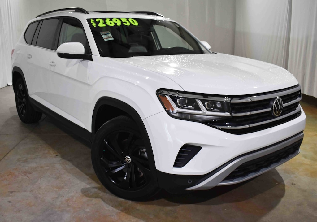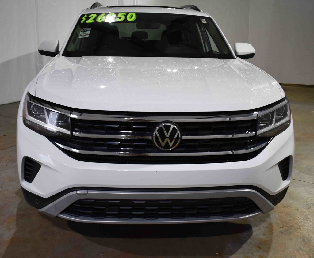 Clean CARFAX. CARFAX One-Owner. Pure White 2022 Volkswagen Atlas 2.0T SE w/Technology AWD 8-Speed Automatic with Tiptronic 2.0L TSI 3.60 Axle Ratio, 3rd row seats: split-bench, 4-Wheel Disc Brakes, 6 Speakers, ABS brakes, Air Conditioning, Alloy wheels, AM/FM radio: SiriusXM with 360L, Auto-dimming Rear-View mirror, Automatic temperature control, Brake assist, Bumpers: body-color, Compass, Delay-off headlights, Dual front impact airbags, Dual front side impact airbags, Electronic Stability Control, Emergency communication system, Exterior Parking Camera Rear, Four wheel independent suspension, Front anti-roll bar, Front dual zone A/C, Front fog lights, Fully automatic headlights, Heated Comfort Front Bucket Seats, Heated door mirrors, Heated front seats, Illuminated entry, Leather Shift Knob, Low tire pressure warning, Occupant sensing airbag, Outside temperature display, Overhead airbag, Panic alarm, Perforated V-Tex Leatherette Seating Surfaces, Power door mirrors, Power driver seat, Power Liftgate, Power steering, Power windows, Radio data system, Radio: MIB3 Composition Media w/8" Touchscreen, Rain sensing wipers, Rear air conditioning, Rear anti-roll bar, Rear seat center armrest, Rear window defroster, Rear window wiper, Remote keyless entry, Roof rack: rails only, Security system, Speed control, Speed-sensing steering, Split folding rear seat, Spoiler, Standard Suspension, Steering wheel mounted audio controls, Tachometer, Telescoping steering wheel, Tilt steering wheel, Traction control, Trip computer, Turn signal indicator mirrors, Variably intermittent wipers, Wheels: 20" x 8J 5-Spoke Silver Painted Alloy.