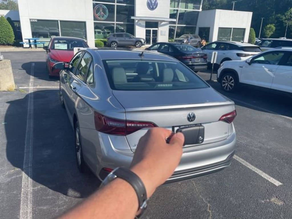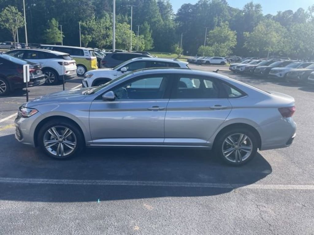 Silver 2022 Volkswagen Jetta 1.5T SE FWD 8-Speed Automatic with Tiptronic 1.5L I-4 DI DOHC Turbocharged Exterior Parking Camera Rear, Fully automatic headlights, Heated door mirrors, Heated Front Comfort Sport Seats, Heated front seats, Power driver seat, Radio: MIB3 Composition Color w/6.5" Touchscreen, Rain sensing wipers, V-Tex Leatherette Seat Trim, Wheels: 17" Twin 5-Spoke Silver Painted Alloy.